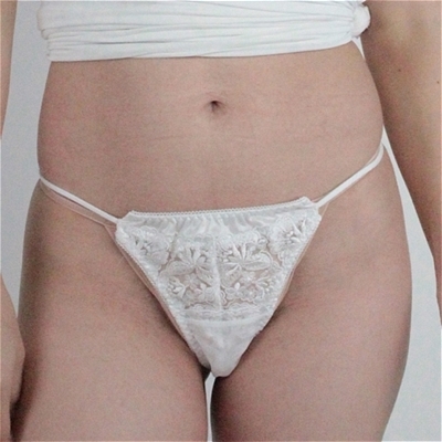光沢柔らかレース付き脇ゴムポケット付きTバック (ホワイト)