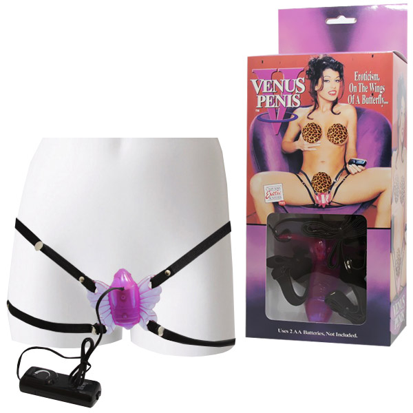 ペニスを背負った蝶が過激にバイブ!ヴァギナに密着して3点を刺激する装着型ローター「ビーナスペニス」。しっかりと固定できるベルト付きなので、アソコにピタリと密着!膣内はもちろん、クリトリスやアナル周辺まで責めまくります。振動の強弱はコントローラーで無段階調節が可能です。単三電池×2本使用。