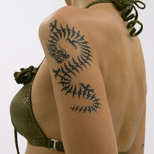 TATTOO(タトゥー)シールで、グッと色っぽく!いつものコスプレ衣装に合わせて、こだわりの箇所に貼り付けるだけ!特殊な素材を使用しているので、皮膚の動きと一緒に伸び縮みします。入浴したり、海やプールに入っても2、3日は取れません!あなたならどこに貼る?SM女王様風に胸元?ほのかにセクシーな首筋?クールに決まる腕?小悪魔ちっくな足首?パーティーに、お祭りに、イベントに、大活躍!あなたの個性で選んでね!