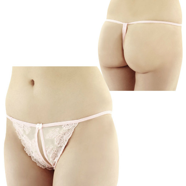 <EROX>淡いピンクのレースで可憐な貴女を演出するセクシーなオープンショーツ。フロントレースの可愛らしさと大胆に開いたオープンタイプとのギャップにカレもイチコロ!さらにバックはTバックでエロチックに仕上げたランジェリーです。
