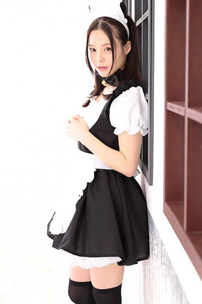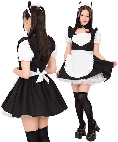 気分はまるで仔猫ちゃん!キュートなネコ耳メイドコスチューム。黒×白のミニワンピは胸元ギャザーでセクシーに!かわゆい猫耳カチューシャとチョーカーが萌え〜なコスプレ衣装で、ご主人様にご奉仕するニャン!