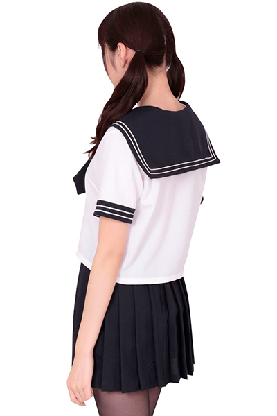 大人気の女子高生コスチューム!夏服仕様の半袖セーラー服コスプレ。ワッペン付きブラウスはネクタイ一体型なので、着用時もラクチン!定番色のネイビープリーツスカートがリアルな、正統派のセーラー服です。