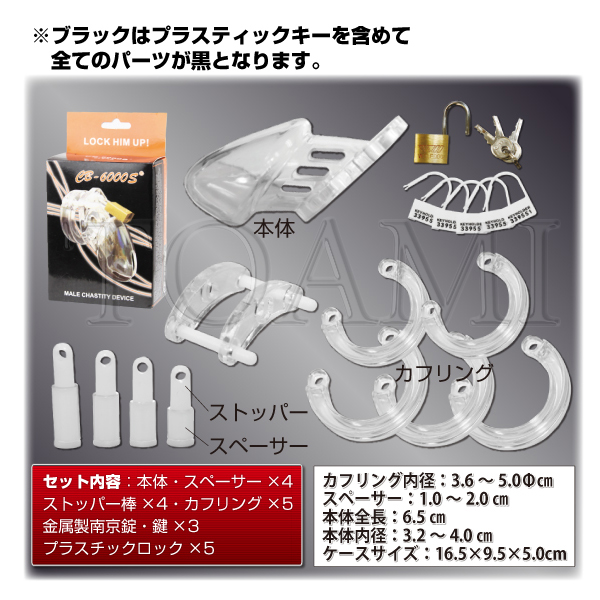 さらに拘束感を味わいたい方に!人気のプラスティック貞操帯「CB-6000」にショートバージョンが登場!「CB-6000」よりも局部の全長が約2cm短くなり、さらに強い拘束感を味わえるようになりました。大きさの異なるカフリングとピンが付属していますので、フィット感の調節も可能です!また装着したまま排泄もできるので、装着後に付属の南京錠、またはプラスティックロックで鍵をかければ、日常的に拘束&勃起制限を行えます。こちらはSMボンテージ風のブラックカラー。