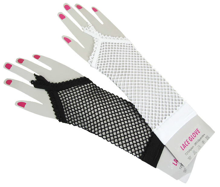 おしゃれな手元を演出する、フィンガーレスタイプのメッシュグローブ(ホワイト)。中指をリングにかける指出しデザインの手袋なら、指先が隠れないので自慢のネイルアートも美しく見せられます。様々なコスチュームとも相性抜群です!