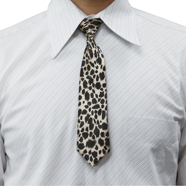 ちょい悪系を目指す貴方に、小物でレオパード柄のネクタイはいかがですか?全長はおよそ25.4cm、大剣幅は6.6cmで、派手なデザインではありますが、光沢感のある生地と黒1色の斑点が、どこか落ち着いた印象を与えるサイズ調整可能なネクタイ。ホックベルトで調節することで、首周りの太い方でも細い方でも身に着けていただけます♪パンク系ファッションに用いてもオシャレなアクセントになりそうですが、男性ならダークカラーのお洋服と合わせればちょい悪オヤジ感を出すこともできそうですね。