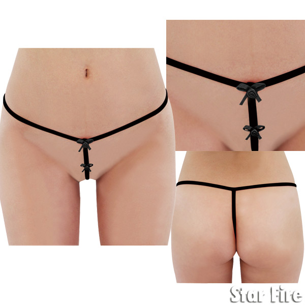 <EROX>男性陣の興奮度MAX!アナタの大事な秘部を、黒紐だけでセクシーに飾るTバックショーツ。フロント部分にさり気なく付いた、小さなリボンが超キュート!「今夜は勝負の日なの!」って時にオススメのセクシーランジェリーです。