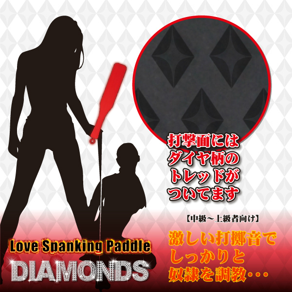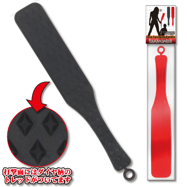 激しい打擲音でM女・M男さんをしっかりと調教できるSMグッズ「ラブスパンキングパドル ダイヤモンド」。SM定番色とも言える赤と黒で仕上げた本体は、その日の気分によって使い分け可能!また、激しい音と同時に叩かれて叫んでいるパートナーの姿を見て、すっかり女王様気分に!激しい痛みが快感に変わる…。この商品は中級者から上級者向けの調教グッズです。