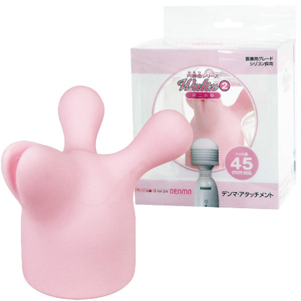 キュートな癒し系ヘッドでお・も・て・な・し!おもてなしデンマ用アタッチメントシリーズ「円舞曲 第二楽章」。こちらはクリトリスを挟めるスリット入り突起と、動物の耳を思わせる2つのぷっくり突起がついた形状。優しい肌触りの医療用グレードシリコンで、快感ポイントを優しく刺激します。※別売りの「おもてなしデンマ(b21566)」だけでなく、ヘッド直径4.5cmの電マ(フェアリーミニ等)であれば装着可能です。
