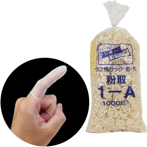 性感マッサージの必需品!たっぷり1000個入、業務用サイズの指サック。表面の粉が少なく、指に装着しやすい巻きタイプ!自然な着け心地でフィット感もバツグンです。爪で破れにくいよう先端側は厚めに、締めつけられないよう指の根元側は薄めになった安心設計!サイズは内径18mmと太めタイプ。風俗業者様にも個人のお客様にもご愛用頂いている、まとめ買い用の指サックです。