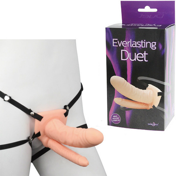 一度で二重の快感をプレゼント!二つの穴を同時責めできるペニスバンド。●大小二本のリアルなペニス型●ヴァギナ用は中が空洞なので男性も装着可●空洞内部はソフト樹脂で優しくコーティング●4点を固定して装着するベルトタイプ。普通のペニバンじゃもう物足りないというワガママレディにオススメ!どちらの穴もしっかりと深い満足感を得られること間違いなしの二穴責めアイテムです。