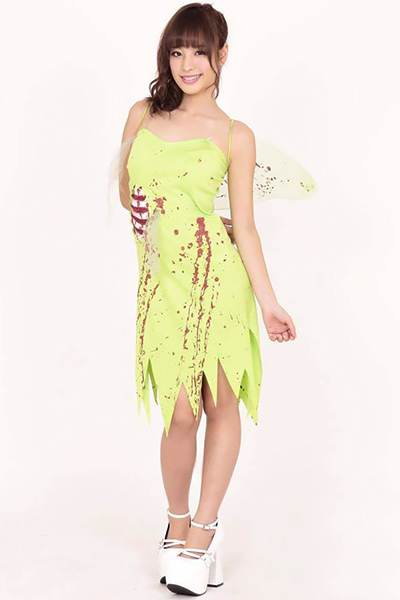 妖精までゾンビ化しちゃった?!ホラーな感じがキモ可愛いハロウィンコスプレ衣装。●暗闇でも目立つ黄緑色のスリップワンピース●血しぶきやあばら骨を見せてスプラッターな感じを演出●シースルーでスケスケ・背中に装着する羽。お化粧だってゾンビっぽく!手を前に出して脚を引きずりながら無表情で歩けば、みんな怖がって近づかないかも。※こちらの商品は受注発注商品の為、ご注文から発送まで2〜3営業日掛かる場合が御座います。
