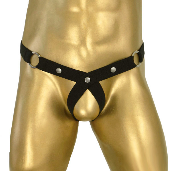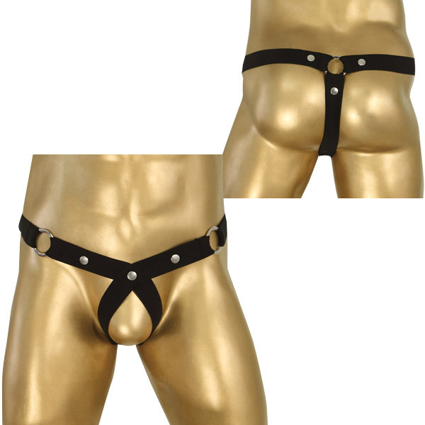 <EROX>これぞワンランク上のメンズファッション!ベルトをリングで繋いだお洒落なメンズ用オープンショーツ。●セクシーなブラックカラー●大胆に局部を露出するオープン仕様●お尻をさらけ出すTバックタイプ●シンプルスタッズがアクセント。キメたい夜に最適な男性用ランジェリーです。