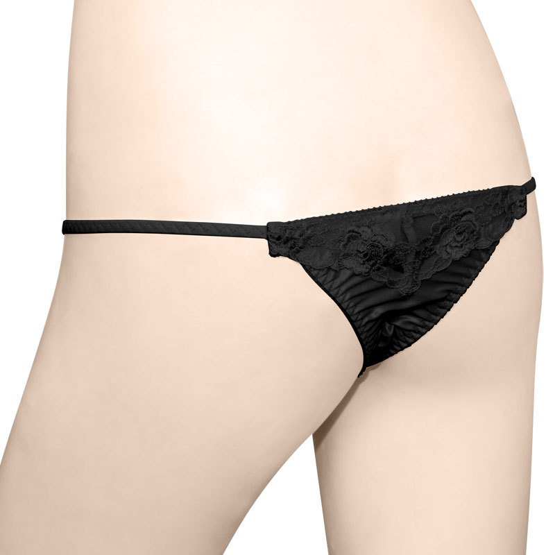 > バックフラワー刺繍スーパーマイクロTバック ブラック
