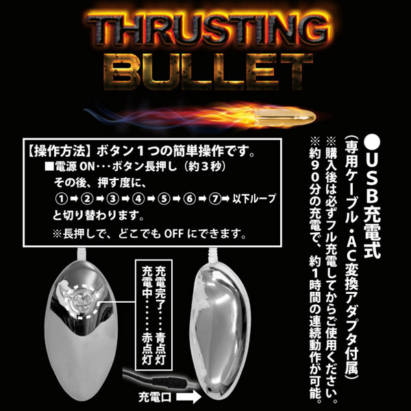 上下運動でズンズン突き上げ!奥まで響かせるリニアピストン式の弾丸型シングルローター。●メタルシルバーの弾丸フォルム●全長9.2cmのロングな満足サイズ●アナルにも挿入OKなスリムボディ●内蔵電磁石の反発力で上下にピストン●ピストン運動は7パターン●ワンボタンの簡単操作リモコン●充電約90分で最大60分連続動作可●USBケーブル&変換アダプタ付属●USB&コンセントの両対応充電可。内部にある電磁石の反発によってローターが上下にピストンするという、画期的な機能を搭載したシングルローター。弾けるような激しい上下運動をぜひ体感してください。※初回は必ずフル充電してからご使用ください。