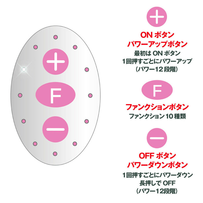 集中刺激も思いのまま♪どんな気分にもあわせられる多彩アクションローター。●先端がクイッと曲がった鉤爪型●最高14000回転の超ハイパワー●12種類の強弱切り替え(+-ボタン)●10種類のリズム切り替え(Fボタン)●12×10=120種のアクションに●周囲を気にせず使える静音設計●お手入れ簡単な生活防水機能。今日はシンプルに強弱だけ、明日は冒険してリズムをプラス…その日その時の気分次第で様々なアクションを楽しめる万能ローター。形状を生かしてアナルや乳首などへのピンポイント刺激もおすすめです。