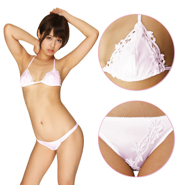 フラワー刺繍と光沢感でボディを華やかに彩る三角ブラ&Tバックショーツセット。●光沢ピンクのフェリカ生地●ホルターネックの三角ブラ●浅履きローライズショーツ●上下に花刺繍をデザイン。フェリカ素材の光沢感とミニマムなシルエットがセクシーなランジェリー!可愛らしいピンクカラーながら、エレガントなフラワー刺繍で品のある仕上がりです。