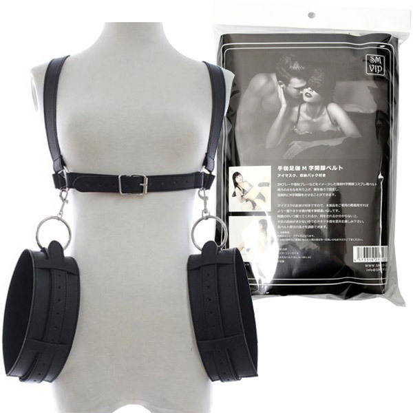 強制的に卑猥な体勢へ拘束!両腕固定+M字開脚ポーズが簡単に出来るSM拘束ベルト&アイマスクのセット。●ハードな黒のフェイクレザー●合皮、柔らかなウレタン素材●フリーサイズ(太腿39〜69cm)●各ベルトはサイズ調節が可能●目隠し用のアイマスクもセット。まんぐり返しやM字開脚も思うがまま!腕を拘束+足を開いた卑猥なポーズへと簡単に固定出来る手枷&足枷ベルト。ベルト式なのでSMビギナーさんでも簡単に拘束可能!アイマスクで視界を奪われ、手足の自由がきかない状況でのドキドキ感を存分に味わえるSMグッズです。