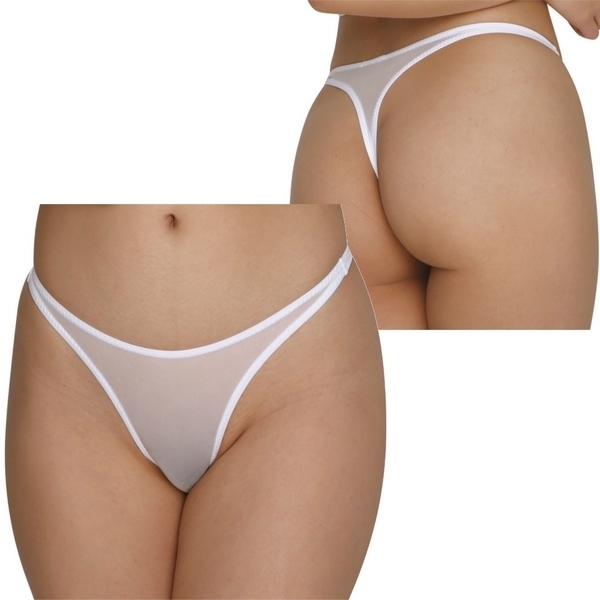 透け感&ハイレグで魅せる♪シンプルスタイルのレディースTバックショーツ。●極薄ホワイトシースルー●縦横2wayストレッチ素材●ストッキング風の肌触り●脚長美脚のハイレグ仕様●身体にしっかりフィット●セクシーなTバックタイプ●女性用Mサイズ・日本製。フェミニンな透け感でセクシーさもしっかり♪普段使いもしやすいシンプルデザインのセクシーランジェリー!上下左右に伸縮するストレッチ素材ではき心地も抜群です。