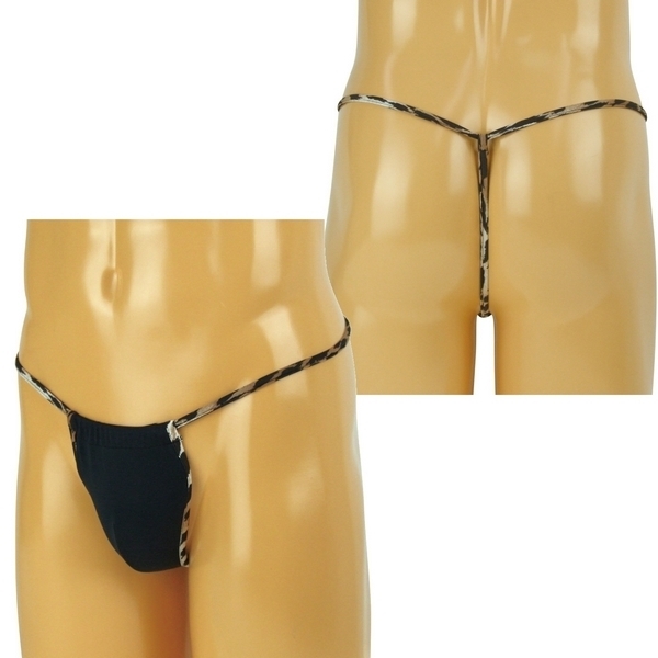 > メンズ ストレッチ生地レオパードラインTバック ブラック