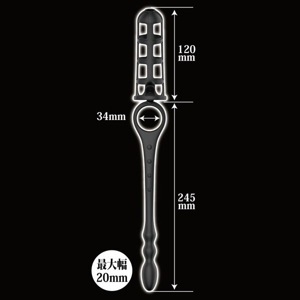パッケージ:26.0×15.0×5.0cm 本体:サック全長12.0cm リング内径3.4cm アナルプラグ全長24.5cm
