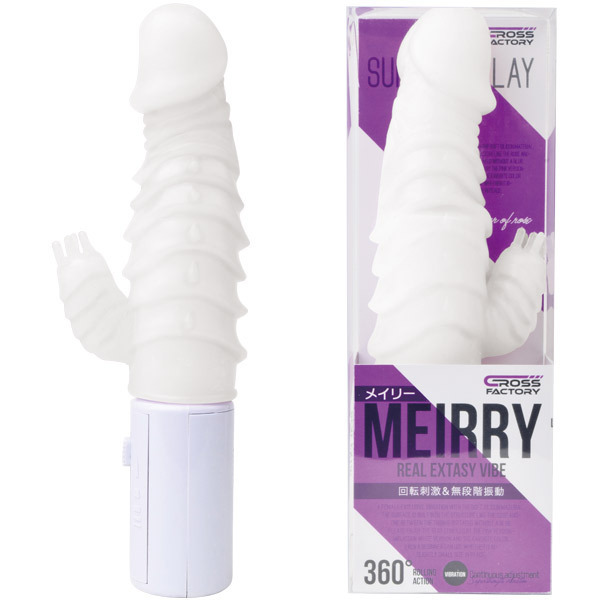波打つ鱗ボディが振動&回転!扱いやすい定番フォルムのスイングバイブ「メイリー ホワイト」。●キュートなホワイトカラー●もちもち質感のエラストマー素材●亀頭を模したリアルヘッド形状●鱗の様なヒダが波打つシャフト●5本の先端突起付きクリバイブ●根元に強力な振動モーター搭載●振動&回転は無段階で調整可能●片手で楽々なスライドスイッチ●単四電池×3本付属(動作確認用)。膣内を掻き回しながらV筋を刺激!ウェーブボディが快感ポイントをムラなく刺激するパワフルバイブ。高刺激ながらもちっと柔らかなシリコン素材で女性に優しい仕上がりです。
