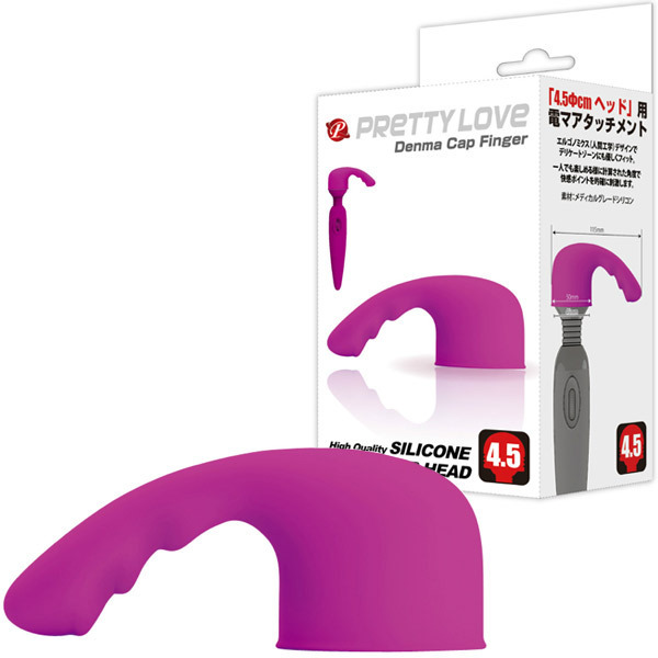 電マをさらに気持ちよくしたフィンガー バイブ♪フィンガーフォルムの電マ用シリコンアタッチメント「プリティラブ デンマキャップ フィンガー」。さらっとした肌触りの良いシリコン製キャップ!ひとりエッチの時でも絶妙な角度の先端がGスポットをしっかり捉える指形状!さらに3つの突起が刺激をプラスしてくれます。フェアリーミニや同シリーズのパワフルワンドマッサージャーなど、ヘッド径45mmの電マに装着可能です。