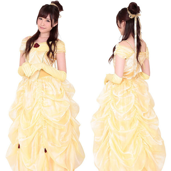 人気のプリンセスになりきり♪イエローカラーが眩しいプリンセス美女ドレス。ふんわりドレープのロングドレスと、お揃いカラーのロング手袋もセット!ボリューム満点のゴージャスなプリンセスドレスです。※セット内容以外は付属しておりません。