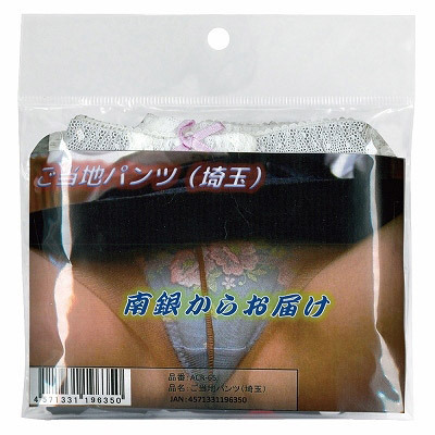 オナニーが捗る使用済み下着×ご当地のコラボレーション!地域色あふれる大興奮の「ご当地パンツ 埼玉」。ローカル色に富んだ脱ぎたての生々しいパンティー1枚入り!心も股間もウズウズしちゃう『ご当地パンツ』シリーズのフェティッシュランジェリー。どんなデザインが届くかは到着してからのお楽しみです。※中身の色柄、形状等はその都度異なります。※USED加工を施した新品未使用品です