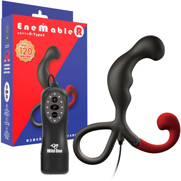 あの前立腺開発グッズ「エネマブル」がグレードアップ♪脳天まで突きぬける120種の快感振動を深い部分で味わえる電動エネマグラ「ENEMABLE R Type-2」。サラッとした肌触りで高級感あふれるマットコート仕様の前立腺刺激グッズが全120種類の振動を可能にした新モデルのIC機能付きコントローラーで登場!微弱から激震への12段階スピードに加え、多彩な10種類の振動パターン変化機能を搭載しています。会陰部を刺激するフックには3段階調整可能な可動式アームを採用し、確実に会陰部を刺激します。超低速からターボモードまで飽きのこない多彩な振動を搭載した深化系アナルグッズ!しっかりと食い込んでダイレクトに前立腺を刺激する中〜上級者向けの『Type2』は絶妙な角度の大きめヘッドが特徴です。単四電池×2本付属。