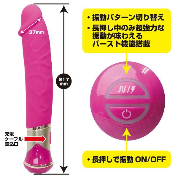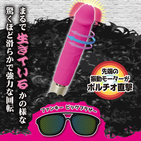 まるで生きているかのよう!滑らかすぎるスウィング機能が搭載された「ファンキービッグブラザー」。リアルなペニス型のストレートボディは亀頭部分に強力なモーターを内蔵!10パターンの振動+スイング機能に加え、ボタンを押している間は生き物のように激しく暴れるファンキーバースト機能が発生。さらに、亀頭部に内蔵された強力モーターによる振動でポルチオを刺激する通常回転から、生き物のような予測不能の小刻み回転まで楽しめます。USB充電式(コード付属)。