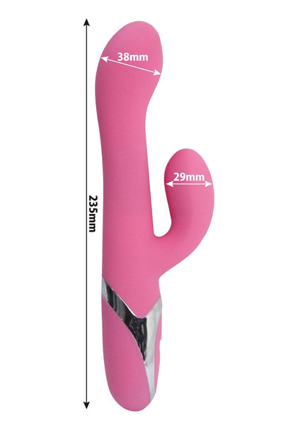 生活防水&静音設計のバイブレーター。人間工学に基づいたデザインでGスポットを集中的に刺激!ぽこっと出っ張ったバイブの先端が膣奥を押し上げ、スイングするバイブに内蔵された5段敷きのパールボールが膣内をかき回す♪さらにバイブと連動して7パターンにも及ぶ振動機能が備わった子機により、クリトリスを同時に責め立てます!USB充電だからプレイ中にコードが邪魔になるといったストレスを感じることもありません。およそ120分の充電で90分の連続使用が可能!また、本体は高品質のシリコン素材を採用。なめらかな質感で肌触りも抜群です♪極めて稀ではありますが、シリコン素材のアダルトグッズにシリコン系ローションを使うとグッズが溶けることもありますので、ローション使用の際には水溶性のものをオススメいたします。