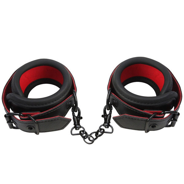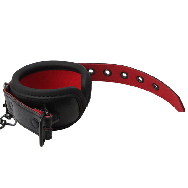 SMプレイの深淵へと導く!赤と黒のフェイクレザーが妖艶な『ABYSS』シリーズのSMグッズ「Abyss(アビス) 足枷」。しっかりとしたクッション付きで肌を傷つけず、ロングプレイも安心。材質はフェイクレザー・鉄、サイズ調節可能なベルトの幅は約5cm、枷同士を繋ぐチェーンの長さは6.5cmです。※モデル着用のボンデージ、ストッキング等は付属しておりません。