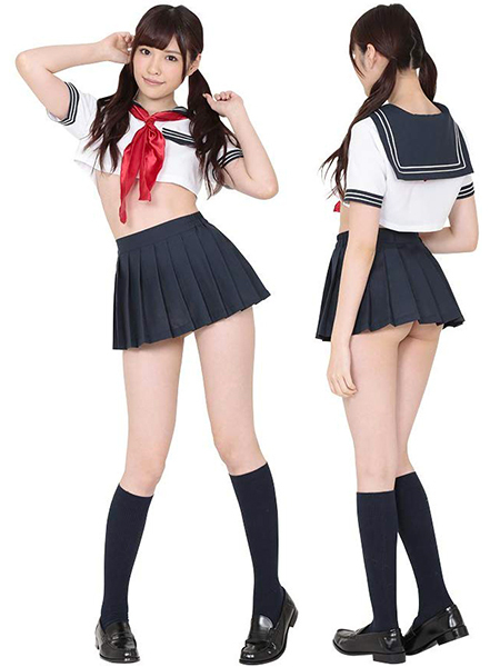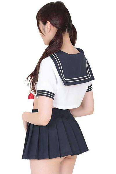 お腹がチラリ!エロカワイイ「ベリーショートセーラー服」の登場♪男女問わず人気のセーラー服ですが、このセーラー服は一味違う!トップスはお腹が見えちゃうほどのマイクロ丈となっていて、スカートからもお尻がチラリ。それがまたエロさを際立たせてくれます♪ポリエステル100%で作っているから、型崩れもしにくくてしわになりづらいのがポイント。彼とのナイトプレイにも最適な一着です!こちらの商品はトップス、プリーツスカート、スカーフがセットとなっております。