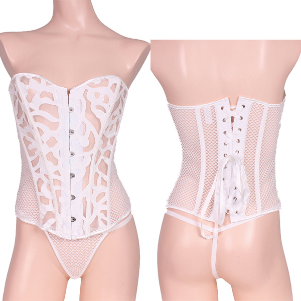 スタイルアップ背中編み上げコルセット&Tバックセット ホワイト