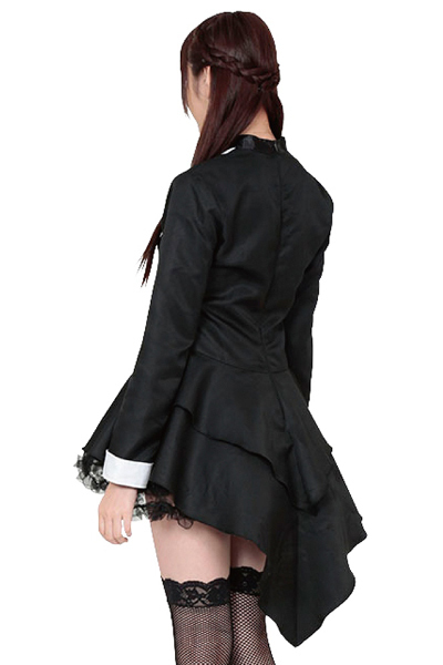 タキシードと言えば正装のきっちりとしたイメージが強いですよね。しかしそんなイメージを払拭!フリルと黒のチュールレースでボリュームを持たせて可愛くガーリーに仕上げました♪また、数あるタキシードのタイプから格式の高いテールコート(燕尾服)をチョイス!燕尾にフリル感をプラスすることで女性人気の高いフィッシュテール風にデザインしています。セットのミニハットを被れば一層可愛さUP!ステッキが有ればなお気分が高まります♪※こちらの商品は受注発注商品の為、ご注文から発送までに3、4営業日掛かる場合が御座います。