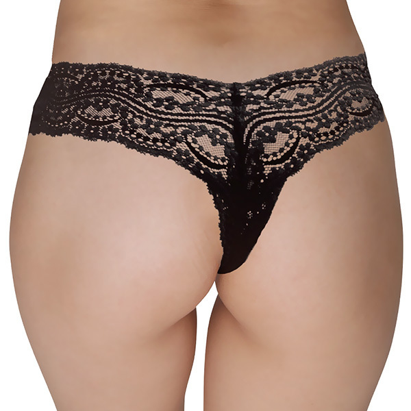 ギャップ萌えを狙うなら大人の黒!透け感たっぷりな総レースの日本製Tバックショーツ。クロッチ部分と下腹部下の生地以外は全て総レースというセクシーっぷりで、アダルトなブラックカラーがより一層エロさを際立たせています♪後ろもTバックタイプなので大人の色気を感じさせ、そこにレースが加わることで上品な仕上がりとなっています。また、フロント部分には小さなビーズが三つついていてちょっとしたアクセントに♪普段清楚な格好をしている女性がこんなランジェリーを身に着けていたら、そのギャップに男性もドキッとするはず!ぜひ勝負下着としていかがですか?
