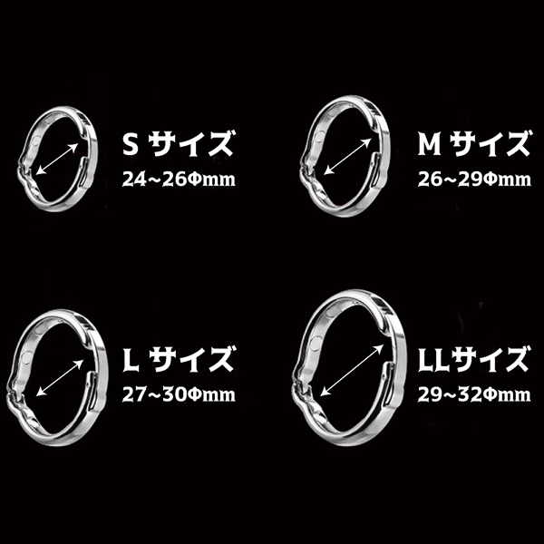 包茎や持続力など男性特有の悩みをサポートする男性補助アイテムならコチラ!内径およそ2.4cm〜2.6cm、洗練された美しいデザインでありながら磁石のパワーで血行を促したり包皮をまとめるなど、男性の自信を取り戻すべくしっかりと働いてくれるのがこのペニス増強グッズ。尿道を締めすぎないよう設計されているため長時間にわたっての装着も可能ですし、トイレの際に邪魔にならないのも嬉しいポイント!さらに金属製というだけあって煮沸消毒もOKなので常に清潔状態をキープできますよ♪