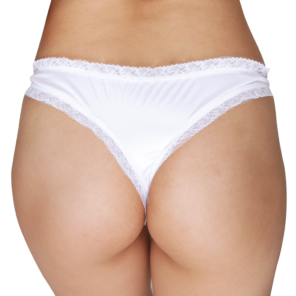 レースやフリル等のかわいいのが好きな女性におすすめ!純白の肌触り抜群な日本製Tバックショーツ♪学園もののラブコメでよくヒロインのパンチラシーンがありますが、そんなヒロインが穿いていそうなほど白くて艶やかなランジェリー。後ろはきゅっと食い込むようなTバックで、リボンやレースで可愛くデザインされていますが、せくしーさも兼ね備えた仕様となっています♪日常使いしやすいシンプルなショーツが良い!けどかわいい下着が穿きたいなら、こちらのリボンやレースをあしらったショーツを是非どうぞ。夜の勝負下着にも!