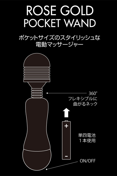 小さくて携帯しやすい!約12cmほどの手のひらに収まるポケットサイズの電マ(ローズ)。ヘッド部分は肌に優しいシリコン製、360度柔軟に曲がるフレキシブルネックで敏感ポイントをしっかり刺激する!プラチナピンクカラーが高級感のあるミニサイズの電マ。