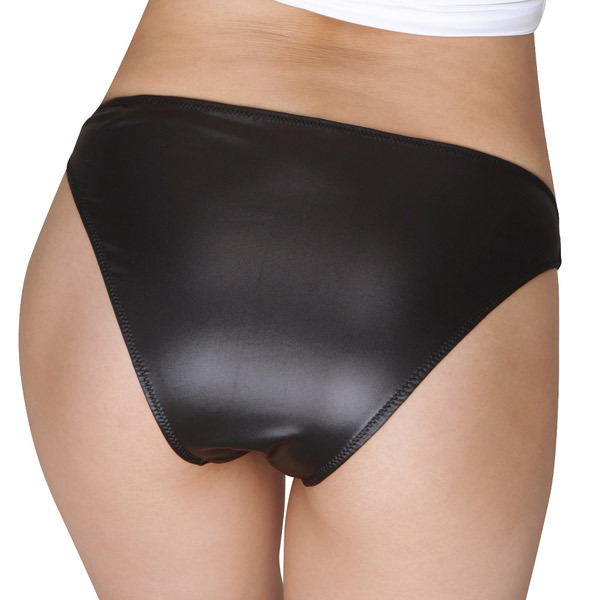 艶のある光沢感が美しいショーツ。フロント部分もゆったりとした造りになっているので男女問わずに着用可能です。ブラックカラー