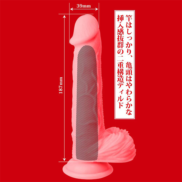 野生を呼び覚ます刺激!しっかりと芯がありハリのあるボディ。外側は柔らかな素材で超リアルな肉感!硬めの芯と柔らかな亀頭・皮のリアル二重構造。奥まで突けるロングサイズで快感ポルチオ開発♪●強力吸盤で壁・床に固定可能●高品質シリコン製