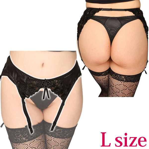 > フェリカ&レースコンビ生地ガーターベルト ブラック L