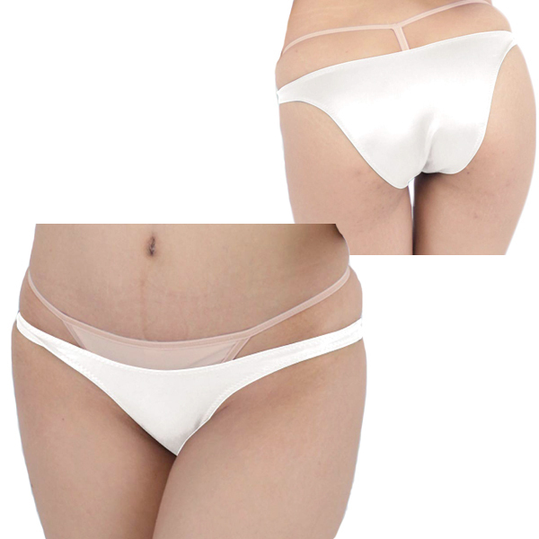 艶やかな光沢が身体のラインを描き出すストレッチ生地の日本製ハーフバック(白)。日常使いに最適な飾り気のないシンブルデザイン!伸縮性があり穿き心地バツグンです♪