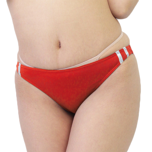 伸縮性のあるストレッチ生地を使用したブルマ風ハーフバック(赤)。サイドは本格的な2本の白ライン入りで、お尻を程よく包み込んでくれるハーフバック仕様なのでボトムスに響きにくく穿き心地も抜群!縫製が丁寧な日本製です。ブルマを普段着でも取り入れたい貴方に♪