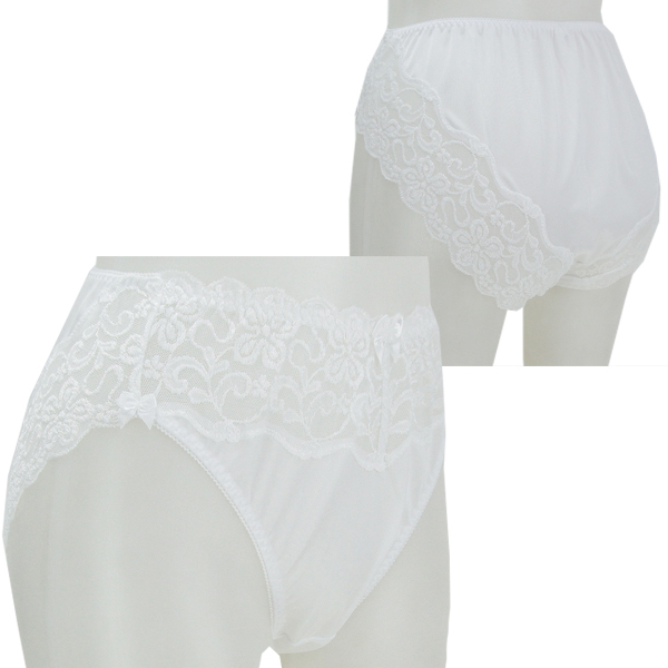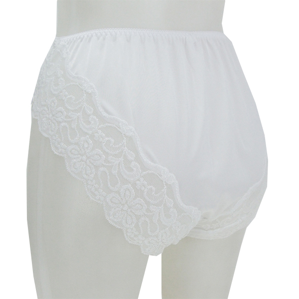 光沢柔らかレース付きフルバック ホワイト LL