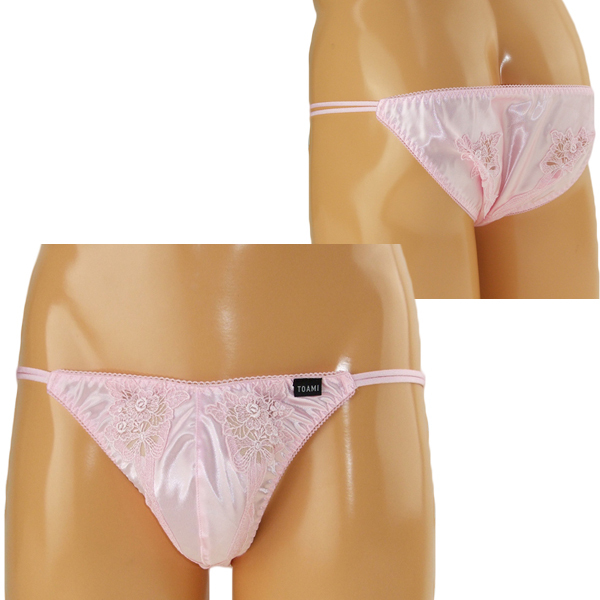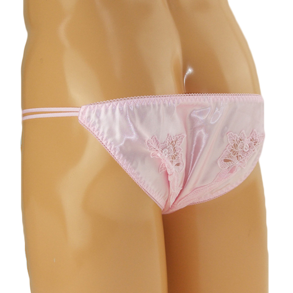 可愛いもの好きな男性に!光沢生地と花柄刺繍が美しい日本製フルバック(ピンク)。艶やかな伸縮性のあるストレッチ生地と透け感のある花柄レースが下半身をエレガントに飾る♪レースの隙間からうっすらと見える素肌にも注目の一枚。女装下着としても是非どうぞ!
