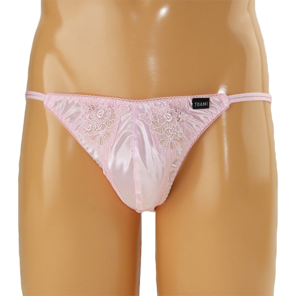 > メンズ 光沢ストレッチ生地レース装飾フルバック ピンク
