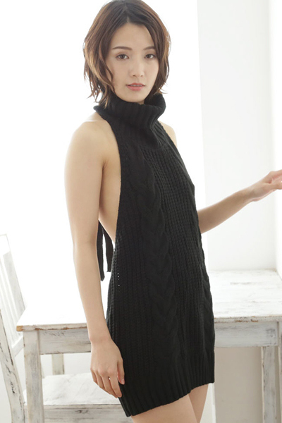 着ればどんな男性も一撃♪童貞を悩殺するセクシーなニットセーター(黒)。胸の横から背中まで大胆に露出したエロくて悩ましいデザインが魅力的!パートナーを誘惑する時以外にも、インナーを着込めば日常使いも出来そうなニットワンピです♪