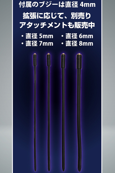 パッケージ:13.5×7.0×5.5cm 本体:フリーサイズ セット内容:コントローラー、コックループ、4mmブジー、接続ケーブル 電池:単四電池×2本使用
