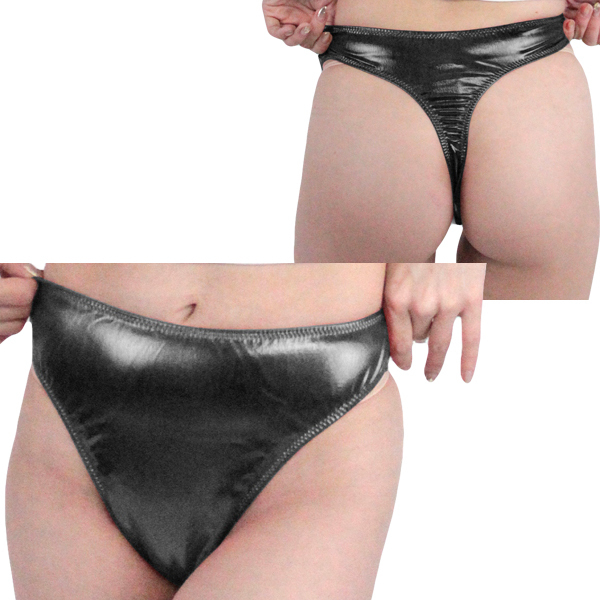 キラキラと輝くメタリックブラックの日本製Tバック。ストレッチ性が高くお尻のラインにジャストフィット!コスプレ衣装やダンス衣装などイベント用としては勿論、日常使いもできる穿き心地抜群の一枚です。Mサイズ